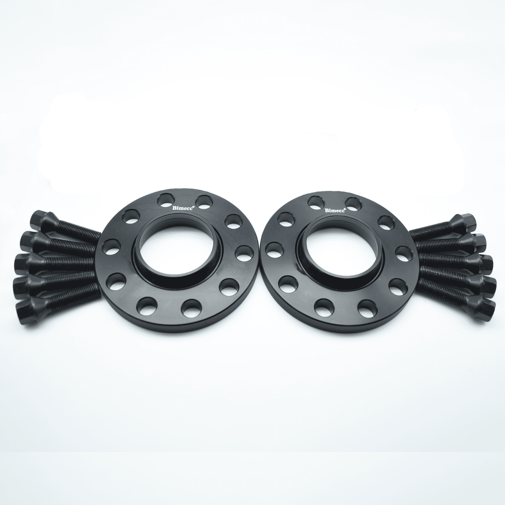 Bimecc Spacer Pair + Tapered Bolts – 5x100 5x112 57.1mm 15mm – Black Alloy Wheel Spacers